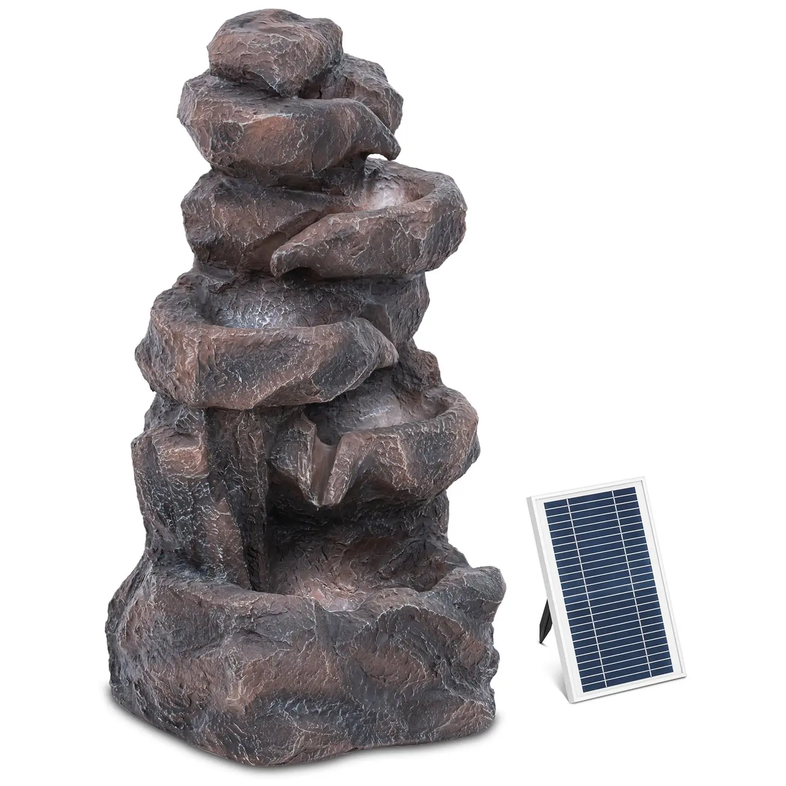 Aurinkokenno-suihkulähde - moniportainen kivimuodostelma - LED-valaistus