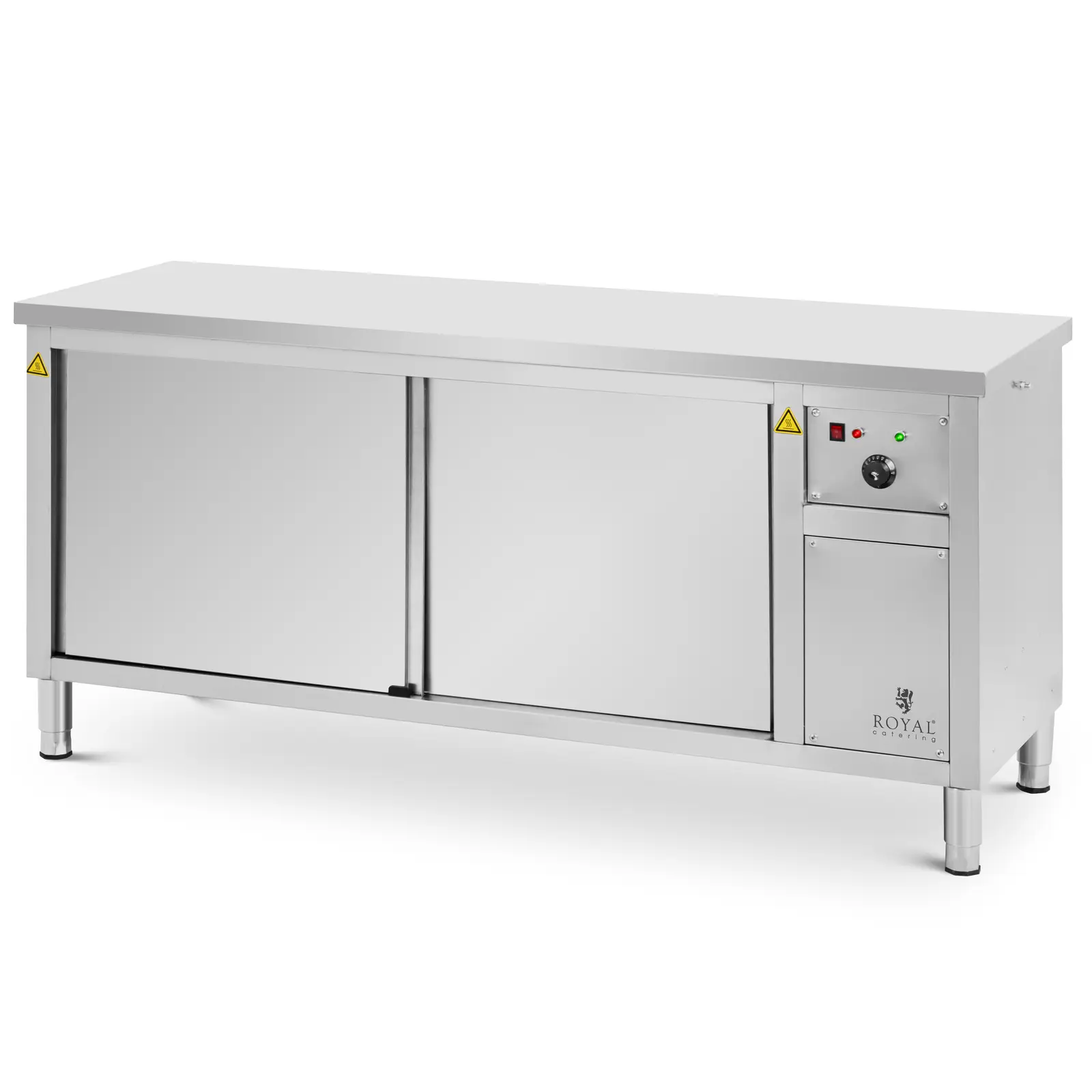 Etsitkö tukevaa työtasoa tai paikkaa, jossa voit pitää ruokia ja astioita lämpimänä? Royal Cateringin tilava lämpökaappi tarjoaa ratkaisun näihin molempiin tarpeisiin. Voit käyttää ruostumattomasta teräksestä valmistettua työtasoa ruokien valmistamiseen tai kätevänä säilytysalustana. Lämpökaapin sisätiloissa on myös runsaasti tilaa valmiille ruoille sekä lautasille ja muille astioille. Näin voit aina tarjota asiakkaillesi oikean lämpöistä ja maukasta ruokaa!
