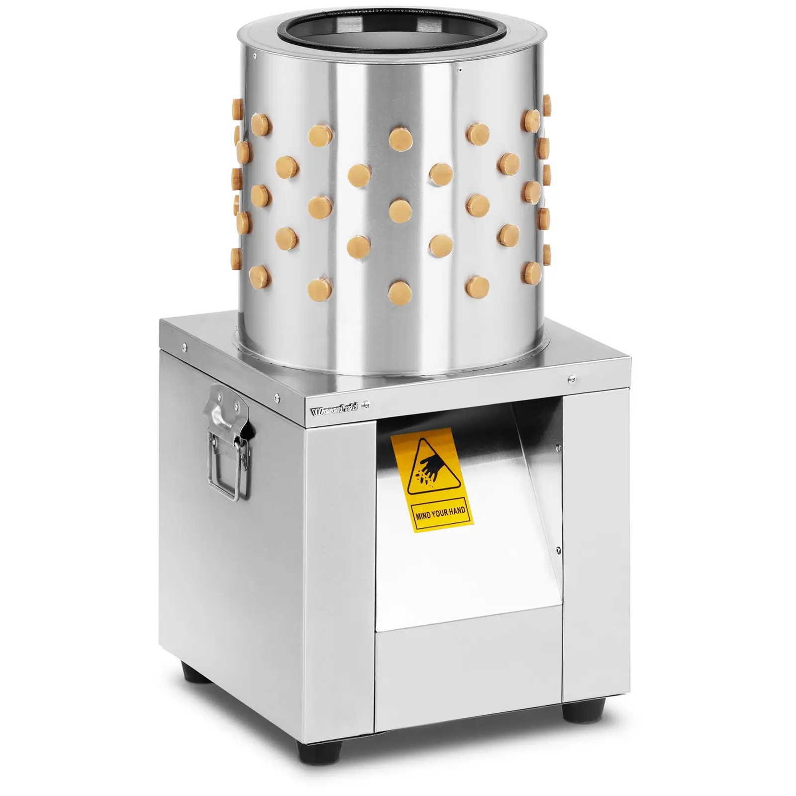 Laadukas kynimiskone kynii viiriäisen minuutissa. Tällä tavoin voit saavuttaa suuren kynimisnopeuden kaupallisessa toiminnassa. Tämän mahdollistaa 150 W:n voimakas moottori, joka kiihdyttää ruostumattomasta teräksestä valmistetun rummun tehokkaasti. Rummun sisäpuolella olevat 113 uritettua ja erityisesti järjestettyä kumista kynintäsormea takaavat optimaalisen tuloksen ja ovat hellävaraisia eläinten nahalle.