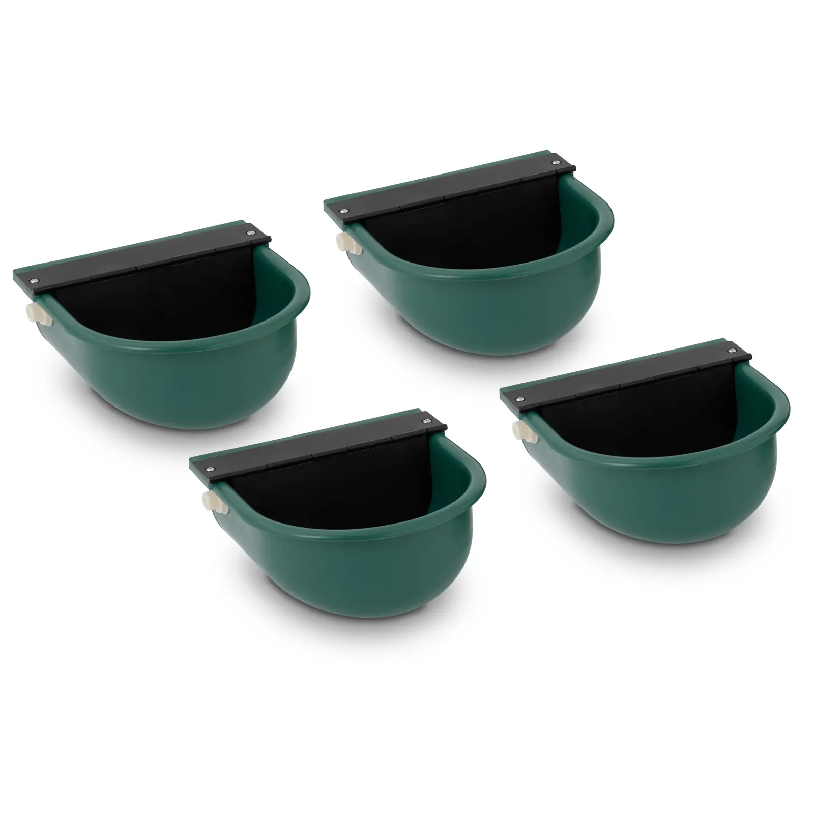 Huolehdi eläintesi vedensaannista tehokkaasti. Tämä juomakuppi hevoselle toimii automaattisesti, mutta ei koskaan täyty liikaa uimurikytkimen ansiosta. Etenkin hellepäivinä uimurikuppi on välttämätön apuväline eläintesi vedensaannin turvaamiseksi. Muovista valmistetun juomakupin tilavuus on 2,8 litraa, joten siihen mahtuu paljon vettä kerralla. Voit kiinnittää vesiliitännän venttiilillä joko vasemmalle tai oikealle puolelle kuppia. Lisäksi uimurin päällä oleva suojus estää eläimiä vahingoittamasta itseään venttiiliin. Muovipinnat ovat erityisen helppohoitoisia, korroosionkestäviä ja pitkäikäisiä. Tämän tarjouksen avulla saat neljä kuppia yhdessä paketissa!